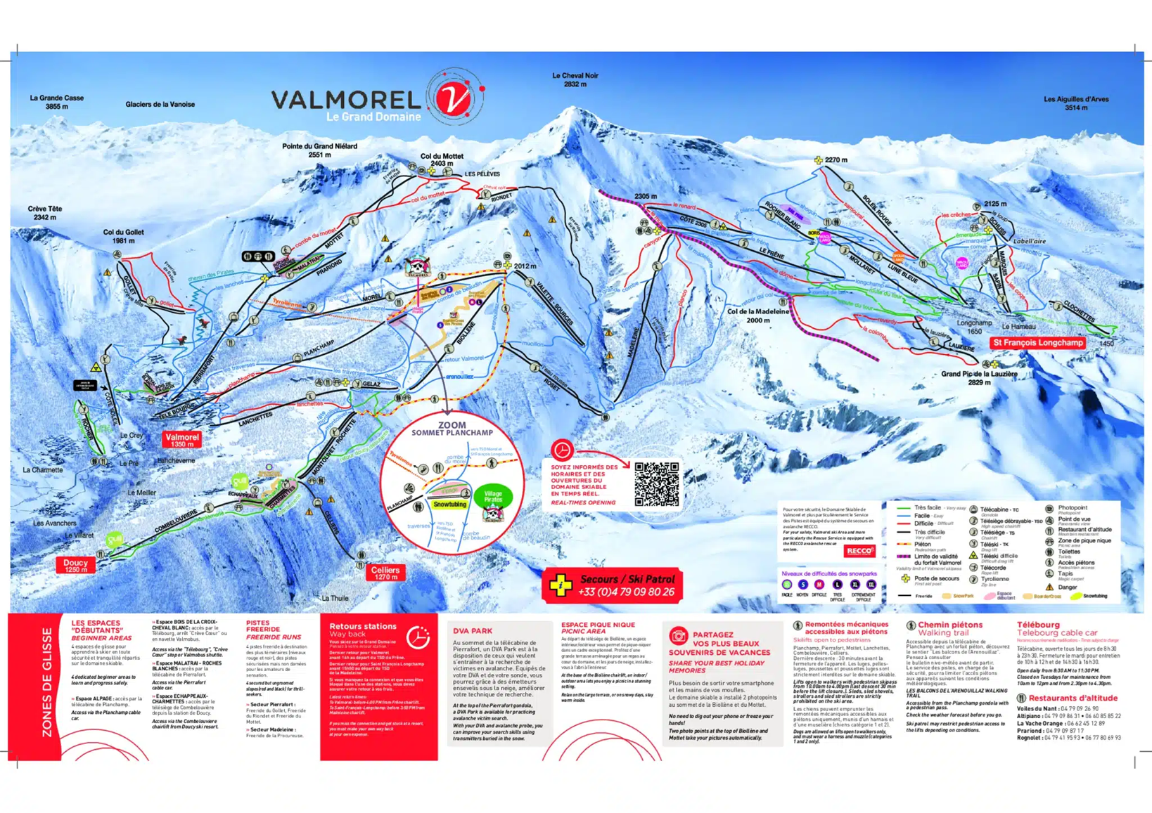 It is part of the 165 km Le Grand Domaine ski area, offering 103 trails, 47 lifts, and extensive beginner-friendly terrain, with 70% of runs classified as green or blue.